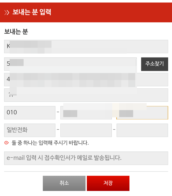 보내는 사람과 받는 사람의 주소와 전화번호를 등록하시면 위의 1,2번이 끝나게 됩니다.