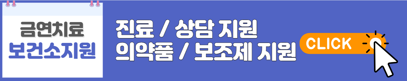 금연은 습관이라고 치부하는데 이것도 엄연히 질병입니다. 금연을 위해 보건소에서 진료와 상담지원뿐 아니라 의약품과 보조제 구입까지 지원해 주고 있습니다.