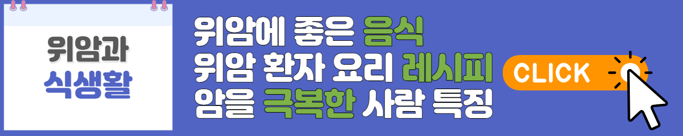 비타민 C, E, 셀레늄, 멜라토닌, 프로폴리스 등 항산화물질은 암예방효과가 있다고 합니다. 그래서 신선한 채소와 과일을 통해 이런 영양소를 충분히 섭취하려는 노력이 필요합니다. 위암에 좋은 음식 레시피와 암을 극복한 사람들의 이야기가 있으니 읽어보시면 도움이 될 것 같습니다.