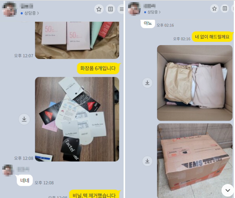 매 단계 같이 확인을 하고 이상 없으면 포장 완료하여 발송해 드립니다. 영수증과 포장한 박스의 사진을 다 같이 보내드림으로써 오해의 소지가 없도록 하고 있습니다.